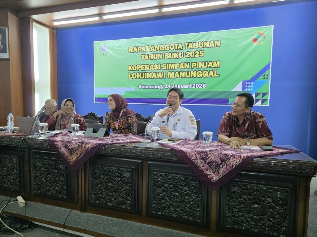 Bapak Eddy Sulistiyo Bramianto, S.E., M.M. selaku Kepala Dinas Koperasi UKM di Pemerintah Provinsi Jawa Tengah menghadiri dan sekaligus memberikan sambutan pada Rapat Anggota Tahunan KSP Lohjinawi Manunggal Tahun Buku 2025 yang diselenggarakan pada hari Rabu, 14 Januari 2026 bertempat di Lantai 6-2 Kampus UNISBANK, Jl. Kendeng V Bendan Ngisor Semarang.